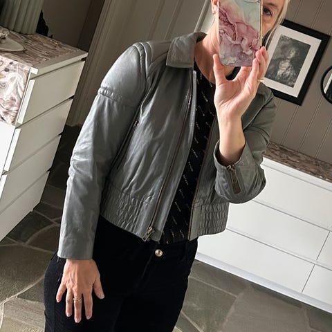 Selges med tungt hjerte da jakken ikke passer lenger.. Er størrelse 38, men føles som 36.