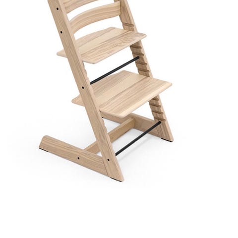 Uåpnet Stokke Nomi barnestol i tre med svarte detaljer selges. Inkluderer spisebrett og nyfødtsett. Justerbar høyde og fotstøtte - designet av Peter Opsvik for barn i ulike aldre.