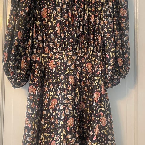 Selger en kjole fra byTimo i str. S. Kjolen er i mønstret paisley i minicord. Nydelig nå på høst og vinter. Kjolen er kun brukt et par ganger, har ingen flekker eller hull og alle knapper er i orden. Fremstår som ny!