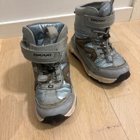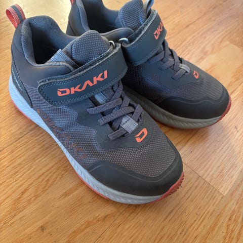 Okaki barn sneakers i svart farge, størrelse 31. Skoene har borrelås og strikk for enkel justering. Yttersålen har mønster for bedre grep. Egnet for gutter. Sympatex for vanntetthet. Fin overgangssko.