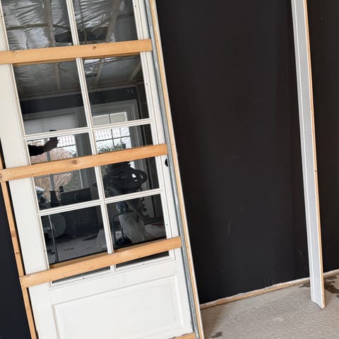 Helt ny skyvedørblad størrelse 90x200 det går a bruke den som vanlig dørblad også. Det er liten skade på et hjørne nederst se bilde, dør var ikke brukt
