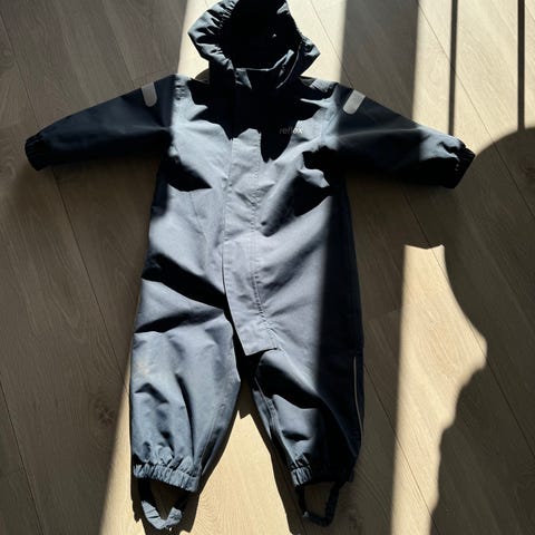 Det er to flekker, en på hetta og en på den ene armen. Kan godt være det får vekk med flekkfjerner. Noe slitasje på søm i baken.