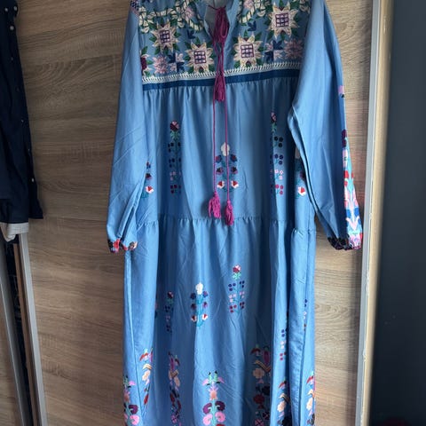 Selger denne fine kjolen dersom den kun har blitt brukt 1 gang for en anledning. I str L, men kan godt passe en i M. Har samme i mørke blå i str M
