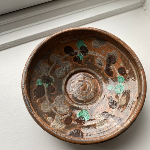 Håndlaget Keramikk Bolle 30 cm Grønn Glasur