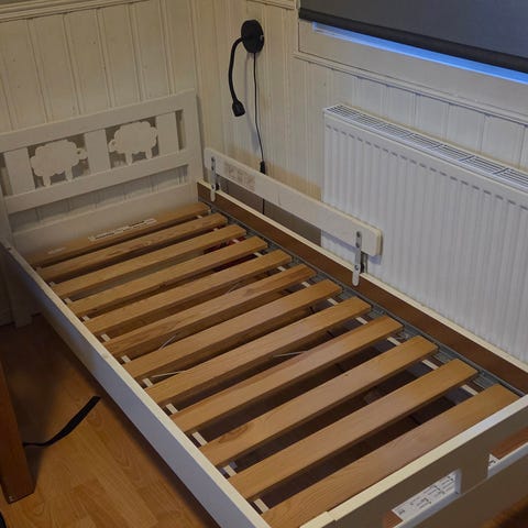Barne/ungdomseng som vokser med barnet. 3 størrelser (145, 180, 215 cm). Noen klistemerker men ellers bra tilstand. Må hentes