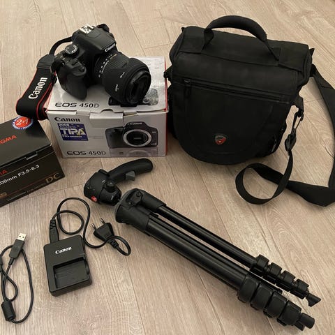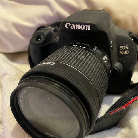 Canon DSLR-kamera med utsvingbar skjerm og medfølgende objektiv. Veldig lite brukt. Leveres med batterilader og kameraveske. Egnet for fotografering i ulike situasjoner, både for nybegynnere og mer erfarne brukere.