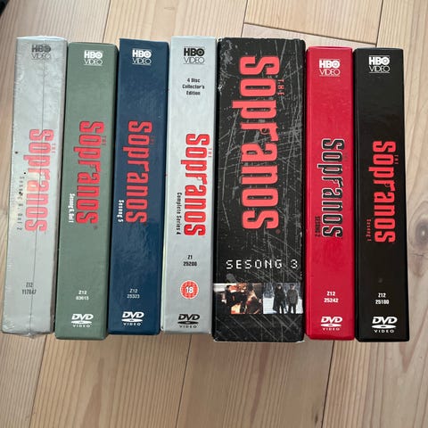 Sopranos TV-serie DVD bokssett som inneholder 6 sesonger. Serien er på DVD-format og inkluderer alle episodene fra hver sesong. Produktet er beregnet for samlere og fans av serien.