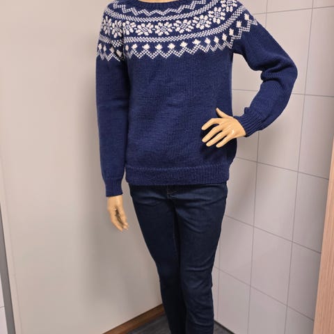 Hjemmestrikket genser strikket i tynt merino ullgarn.