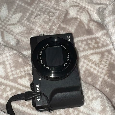 Selger Canon PowerShot G7X Mark II. Kameraet er kjøpt i september 2024, og er nesten ikke brukt. I tillegg til kamera kommer selvfølgelig batteri og ladekabel + håndleddsstroppen som allerede er festet på kameraet.