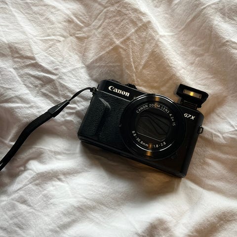 Selger Canon PowerShot G7X Mark II. Kameraet er kjøpt i september 2024, og er nesten ikke brukt. I tillegg til kamera kommer selvfølgelig batteri og ladekabel + håndleddsstroppen som allerede er festet på kameraet.