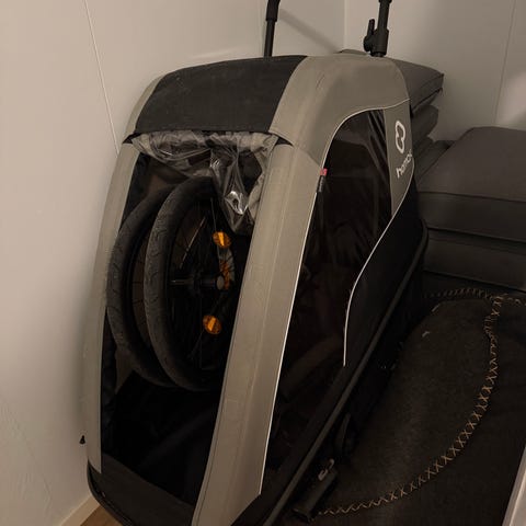 Trygg Lillebjørn sykkelvognen er en lett sykkelvogn av god kvalitet og med demping. Sykkelvognen har plass til to barn. Praktisk regntrekk i front beskytter barna mot stein- og sølesprut. Sykkelvognen er også utstyrt med sikkerhetsbelter som sørger for at barna sitter godt fastspent i en god sitteposisjon. Trygg Lillebjørn kan brukes som sykkelvogn og trillevogn. Svært god synlighet i traffikken takket være vimpel og reflekser foran, bak og på hjulene. Rammen på utsiden av hjulene er også avtagbare. Solid konstruksjon med ramme i stål og med demping som gjør den komfortabel for barna å sitte i. Sykkelvognen monteres/demonteres helt uten verktøy!