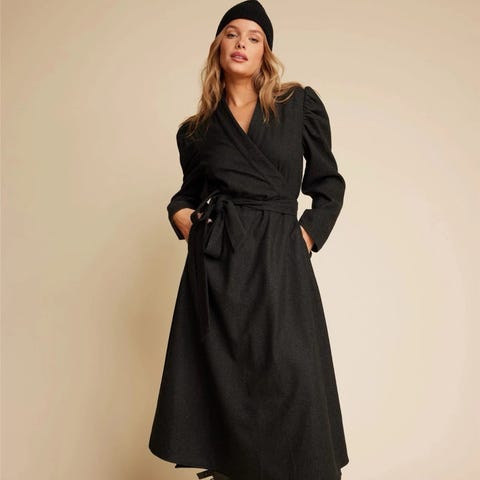 Line of Oslo Hverdagskjole i grå farge, størrelse S. Kjolen har langt erme og et mønster som gir et diskret uttrykk. Egnet for hverdagsbruk.