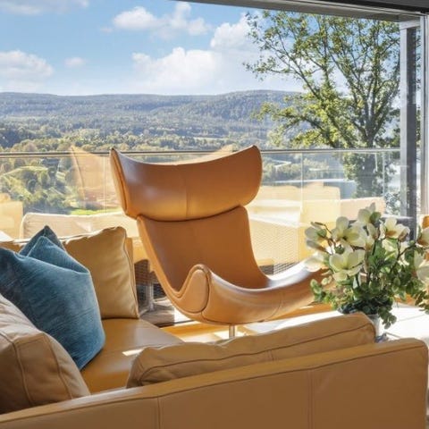 Med sving og justering av rygg. Lite brukt, har stått på en hytte fra mars 2022.