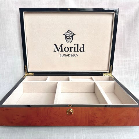 Ønsket navn kan graveres på lokket under "Bunadssølv"