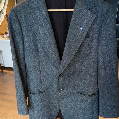 Pent brukt vintage dressjakke fra Matinique. Størrelse 52. Farge grågrønn/khaki. Fra tidlig 90-tall. Kr 250,-.