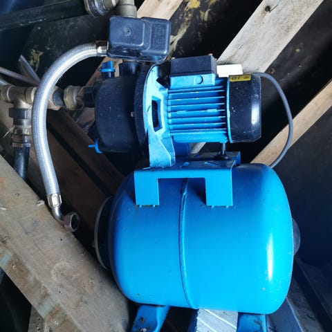 Kraftig vannpumpe med 50 liters trykktank, 105 l/min og 1500w motor. Messingimpeller. Stått lagret for det meste.