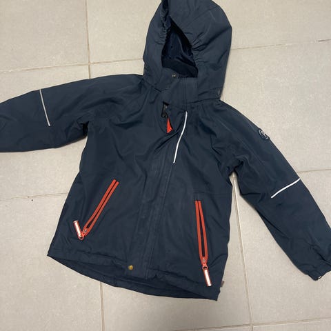 Polarn O. Pyret barnejakke og bukse i størrelse 110, selges samlet for kr 500. Settet er godt brukt,det holder noen vår og høst-sesonger til. Ingen hull eller skader på settet, fotstrikket bør byttes ut. Kan sendes hvis kjøper betaler frakt.