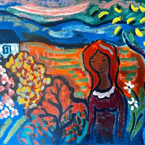 Marc skulptur som forestiller et barn sittende, laget av betong. Høyde 18 cm.Skulpturen har en rå, teksturert overflate og viser detaljer som hår og kroppsstilling. Egnet som dekorasjon innendørs eller utendørs.