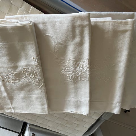3 stk pyntelaken fra 1940/50tallet. De er i tykk bomull.