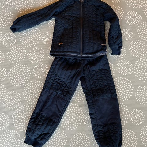 POMPdeLUX regnsett me Barnejakke og tilhørende bukse i størrelse 122, grå farge, designet for unisex barn. Jakken har hette, elastisk midje og glidelås foran. Hel og fin.