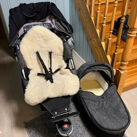 Selger min jogge-barn-vogn. Den er pent brukte rygg-delen kan justeres og legges helt ned. Håndbrems. Vogna har stått kun innendørs. Hjem uten dyr. Brukt kun av ett barn. Må hentes i Oslo på Trosterud.