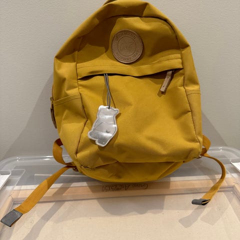 Lys grå sekk til barnet. Flere praktiske lommer. Sekken er for små barn, mener det er rundt 6-8 liter den rommer.