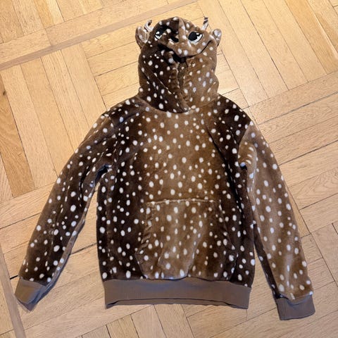 Søt kumønsteet hoody til barn. Myk og god og passer perfekt som kosegenser. Str 130