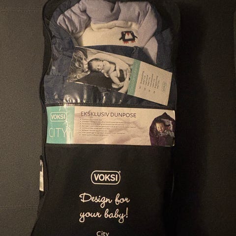 Noe misfarging på øvre del pga sol, men ellers helt fin. Fungerer godt som vognpose om vinteren.