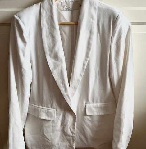 Hvit Nelly blazer med gull detaljer selges. Litt liten i størrelse. Så vil si den er mer som en XS-XXS.