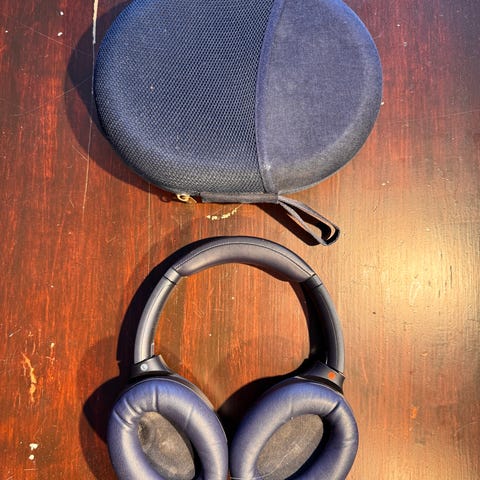Sony hodetelefoner med over-ear design i svart/hvit farge. Trådløse hodetelefoner med aktiv støydemping, justerbar hodebøyle og myke øreputer for komfort ved lang tids bruk.