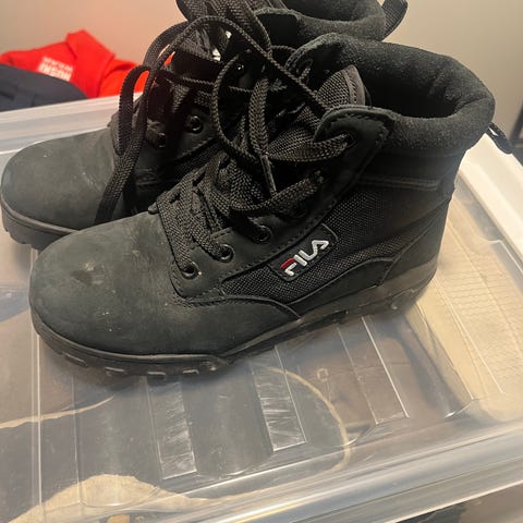 Fila vinter sko boots størrelse 37 for damer. Støvlene har snøring foran og robust gummisåle med godt grep. Farge svart. Skoene er svært lite brukt, bilder av såle viser dette. Selges da jeg har vunnet nye vintersko og ikke trenger så mange par.