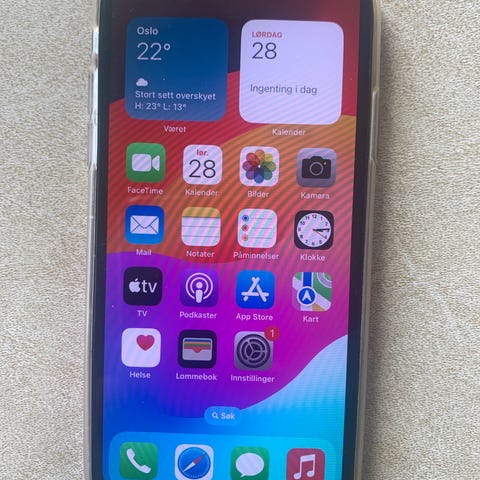 Telefonen har noen bruksmerker på skjermen og bak, men utenom det så er den i veldig god stand.