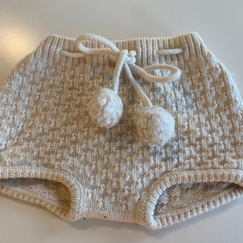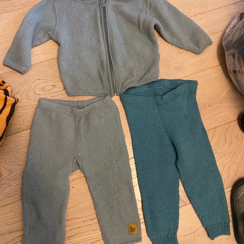 Selger pent brukt hjemmestrikket ullbukse med fot. Perfekt til barn som sover i sovepose/vogna. Ingen feil/mangler. Ingen hull/flekker. Den er lite brukt. Selges med tilhørende votter. Røykfritt & dyrefritt hjem. Kan sendes mot frakt.