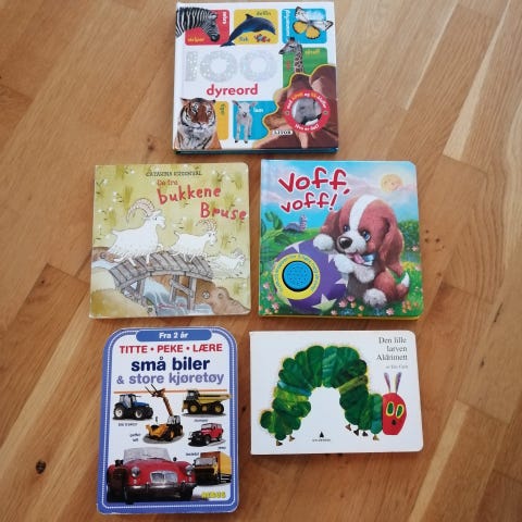 Samling av barnebøker med temaer som Bamse, Potta, Min Første Ord, osv.