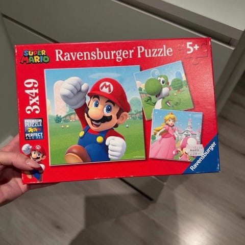 Ravensburger Super Mario puslespill med 1000 brikker. Puslespillet har et motiv med karakterer fra Super Mario-serien i fargerikt design. Brukt en gang, alle brikkene er i boksen.
