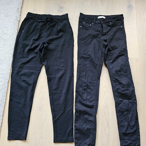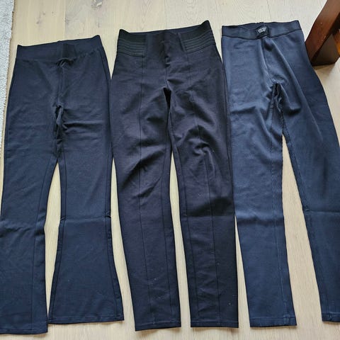 Noen er ubrukt, noen er nesten ikke brukt. 1 bukse er størrelse 170, 4 bukser er størrelse s. Alt passer fint xs. Selges samlet 400kr