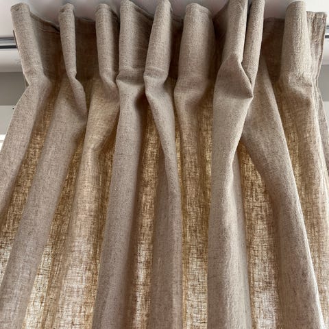 Vevet gardin i linblanding med vakker struktur. Gardinen har et fint fall. Gardinen har påsydd multibånd som gir mange opphengsmuligheter. Velg mellom å benytte de skjulte hempene på multibåndet som gir jevne og fine folder eller tre gardinen rett i løpegangen. For tradisjonelt oppheng benyttes ringer og rynkebåndskroker som festes i rynkebåndet. Tekstilet kan krympe opp til 3% ved vask.
