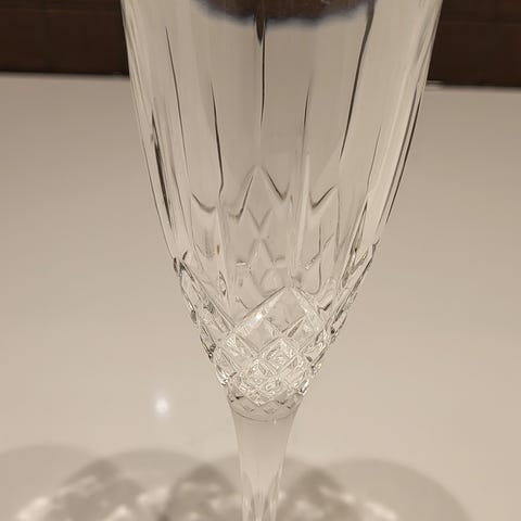 Dekorativt rosa vinglass med teksten "Princess". Glasset er pyntet med to rader diamanter rundt toppen og flere spredte på glasset. Foten og stett er dekket med sølvfarget glitter. Egnet som dekorasjon eller gave. 21 cm høyt.