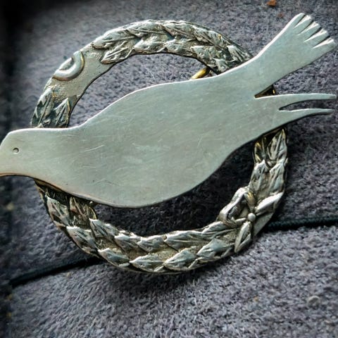 Det står 900s og RBH samt en vikinghjelm på baksiden . RBH er ansvarsstempelet til danske Rasmus Bjørn Halvordersen som var aktiv på starten av 1900 tallet , så vil tro denne er antikk.