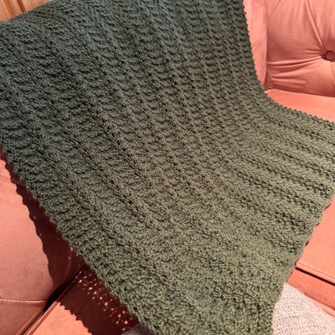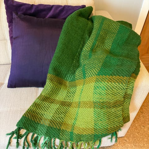 Grå ullpledd med brodert tekst. Nytt, gave?🎁