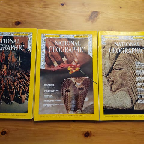 Mer eller mindre komplett samling av National Geographic -blader fra mars 1981 til desember 1999.