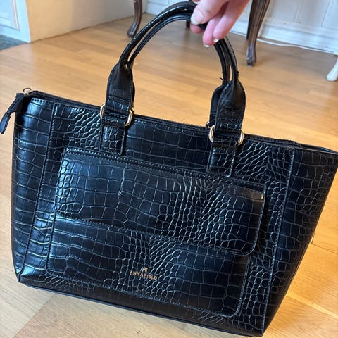 Den er brukt noen få ganger, men det er noen steder nederst lang kanten at ”skinnet“ er litt slitt bort (se bilder).