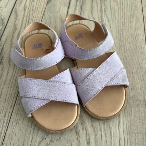 H&M sandaler for jente i størrelse 27. Sandalene er lilla og har en myk såle med borrelås for enkel justering. Brukt ett par ganger av 1 barn.