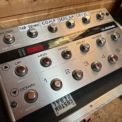 Topp kvalitet fra TC-Electronics og begge kan styre kanal-switching av amp (i tillegg til MIDI). Begge har stått i rack og framstår som nye bortsett fra merker etter rack-skruene. Fungerer perfekt i effektsløyfe, gjerne sammen med en MIDI-styrt amp eller pre-amp. Jeg har bruk de sammen med en Marshall JVM.