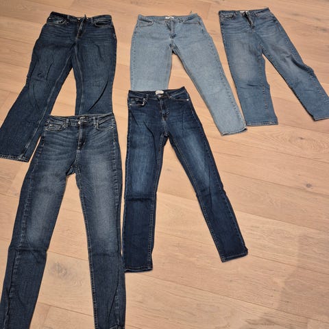 Ulike farger og vasker – fra mørk denim og svart til lyseblå og pastell. Klassiske snitt som passer både til hverdags og mer pyntet stil.