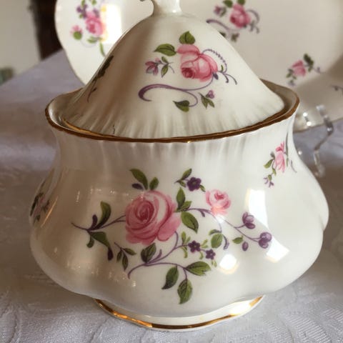 Britisk servise fra Paragon - Remember Me. 12 kopper og 10 fat. Ingen skår e.l.