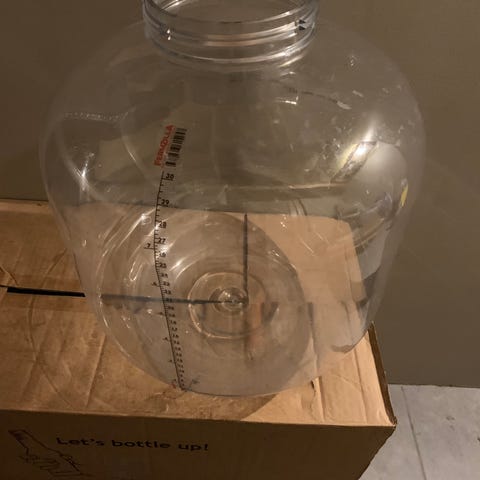 3 Gjeringskar med 3 lokk med 2vannlås, slange til hevert, to hånds ølkorksettet, mange vin korker. Tempertur meter for romtemp, og for å måle vin. Mosstvekt for sødme og regensrør, 1 dunk,