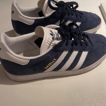Adidas Samba hvite med sorte striper. Str 38. Brukt noen få ganger. Nypris 1449kr.