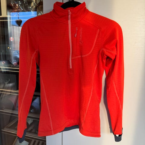 Norrøna Falketind Warm1 jakke i størrelse S for kvinner. Jakken er designet for fottur og er laget i et lett, isolerende materiale i isblå farge. Den har glidelåslommer og en tettsittende passform.