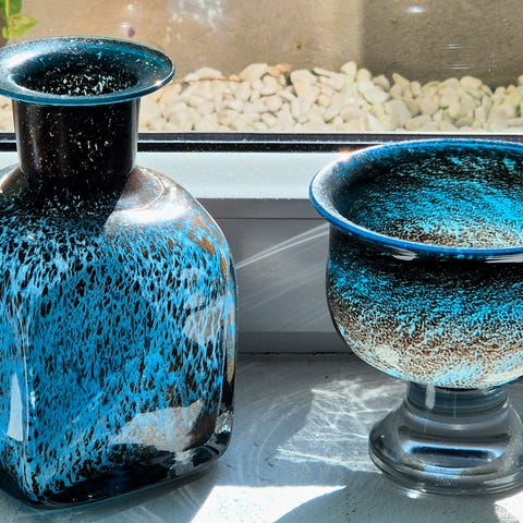 En liten, antikk serveringstallerken i glass designet av Uno Westerberg for Pukeberg.